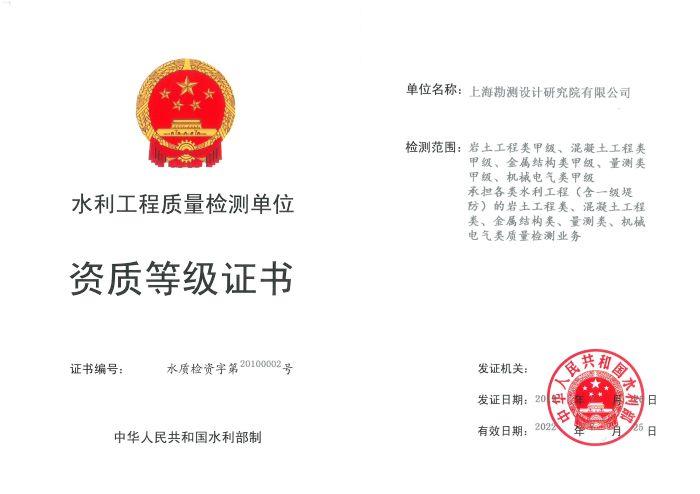 ?????????????????????? ???水利工程質量檢測單位:巖土工程甲級、混凝土工程甲級、金屬結構甲級、量測甲級、機械電氣甲級